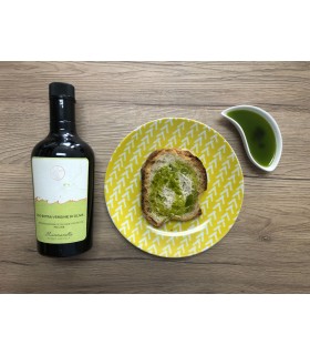 olio è leggermente fruttato ed equilibrato, ha note amare che si fondono in completo equilibrio con il retrogusto leggermente piccante, e con i sentori freschi di erbaceo