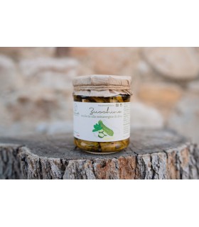 Croccanti fette di zucchine naturalmente essiccate al sole, cotte in aceto, invasettate a mano e conservate in ottimo olio extra vergine di oliva Gentile di Larino.