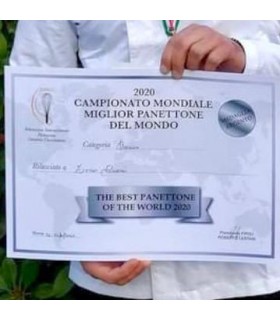 Vincitore del concorso internazionale “The Best Panettone in the World” edizione 2020. 750 Gr di lavorazione tradizionale e materie prime d’alta qualità.